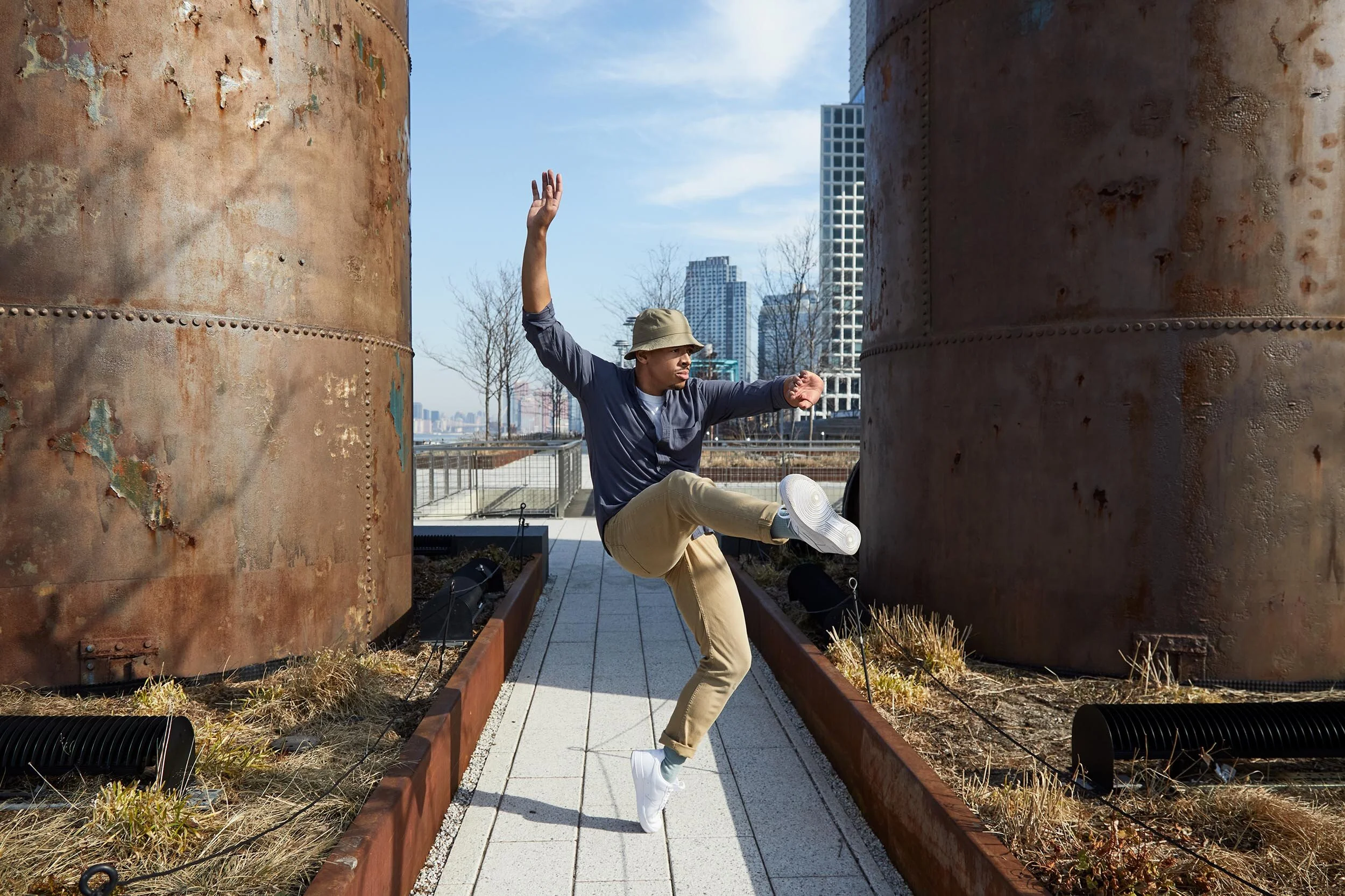 In my ongoing project, started during the pandemic, I work with New York City dancers in urban public spaces. The photographs of dance improvisations, accompanied by the dancers’ own words, trace the resuscitation of the dancers and their practice when, in the absence of colleagues and audiences, they reinvented their relation to their bodies and to the discipline of dance. The project, “Lifting Up,” consists of images of unregulated vibrant small-scale human beings giving birth to themselves within sometimes permissive, sometimes overbearing public spaces. The dancers are soaring, cramped, tormented, jubilant, self-involved, tender, curious. In urban, often rough, spaces, that don’t easily shelter or cradle a human being, these dancers jump out as alive, “there,” present, fully aware, complex, full of intelligence and desire. The work celebrates the unscripted and intensely personal act of self-invention. The city takes on a full range of “faces” and the dancers display their unique responses to the city in which they live.